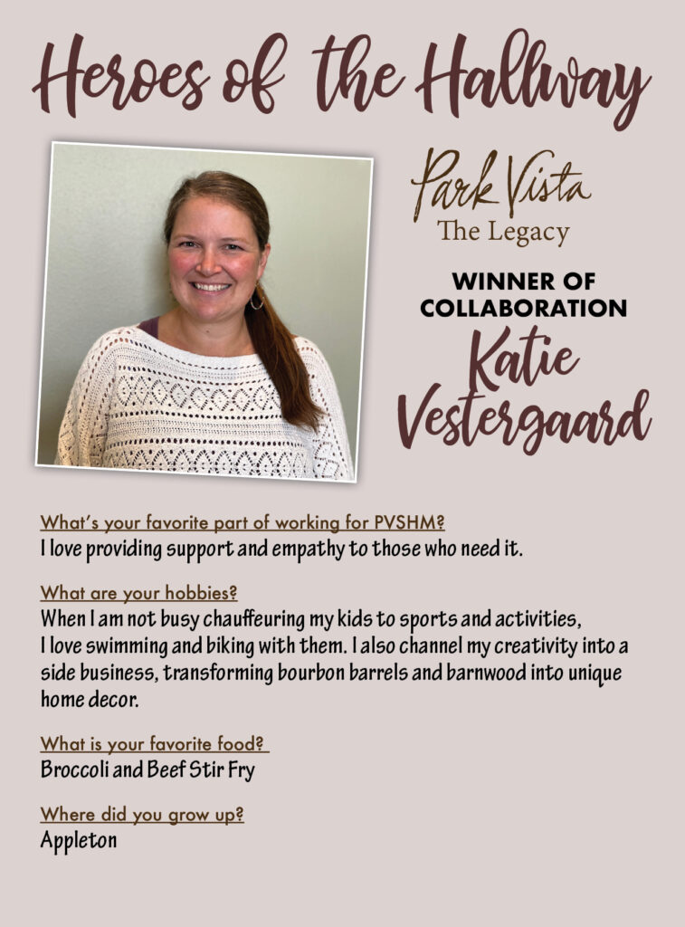 At Park Vista, our mission is “taking care of our loved ones with compassion and grace.” That’s what our team members focus on every day with all of our residents. It’s the dedication and hard work of our team members that we want to honor and highlight for their efforts. That’s why we’ve created our Heroes of the Hallway program.
