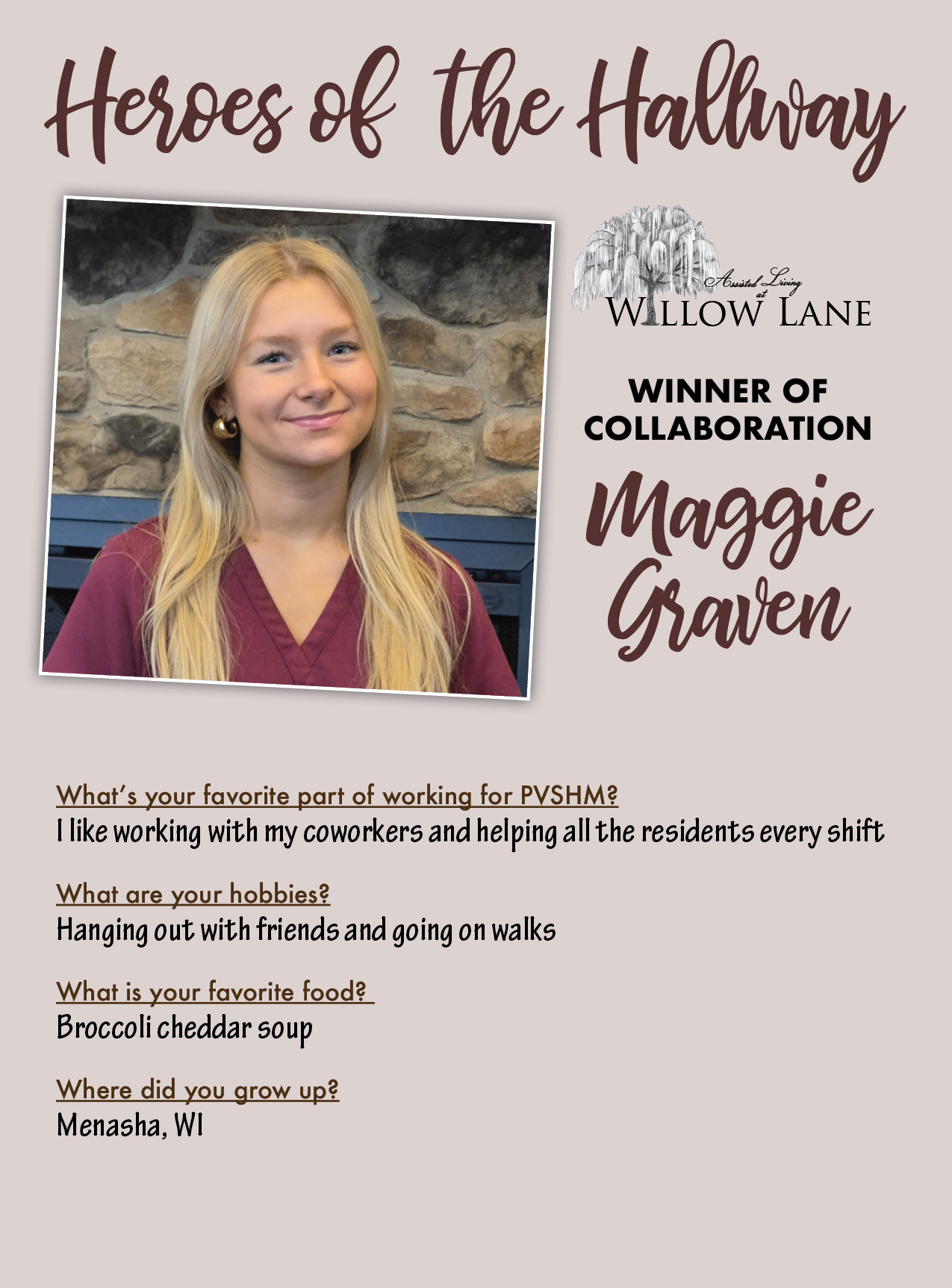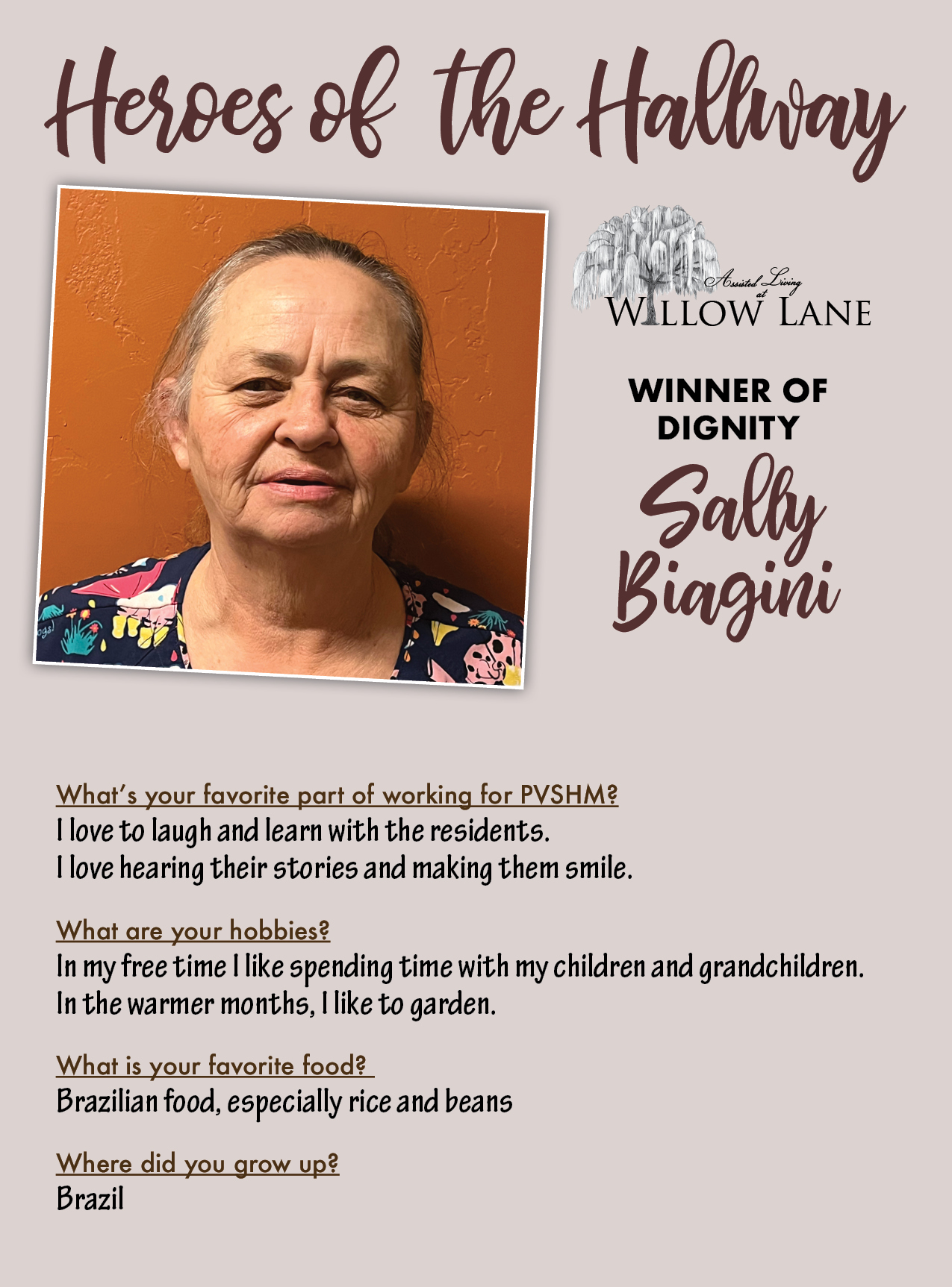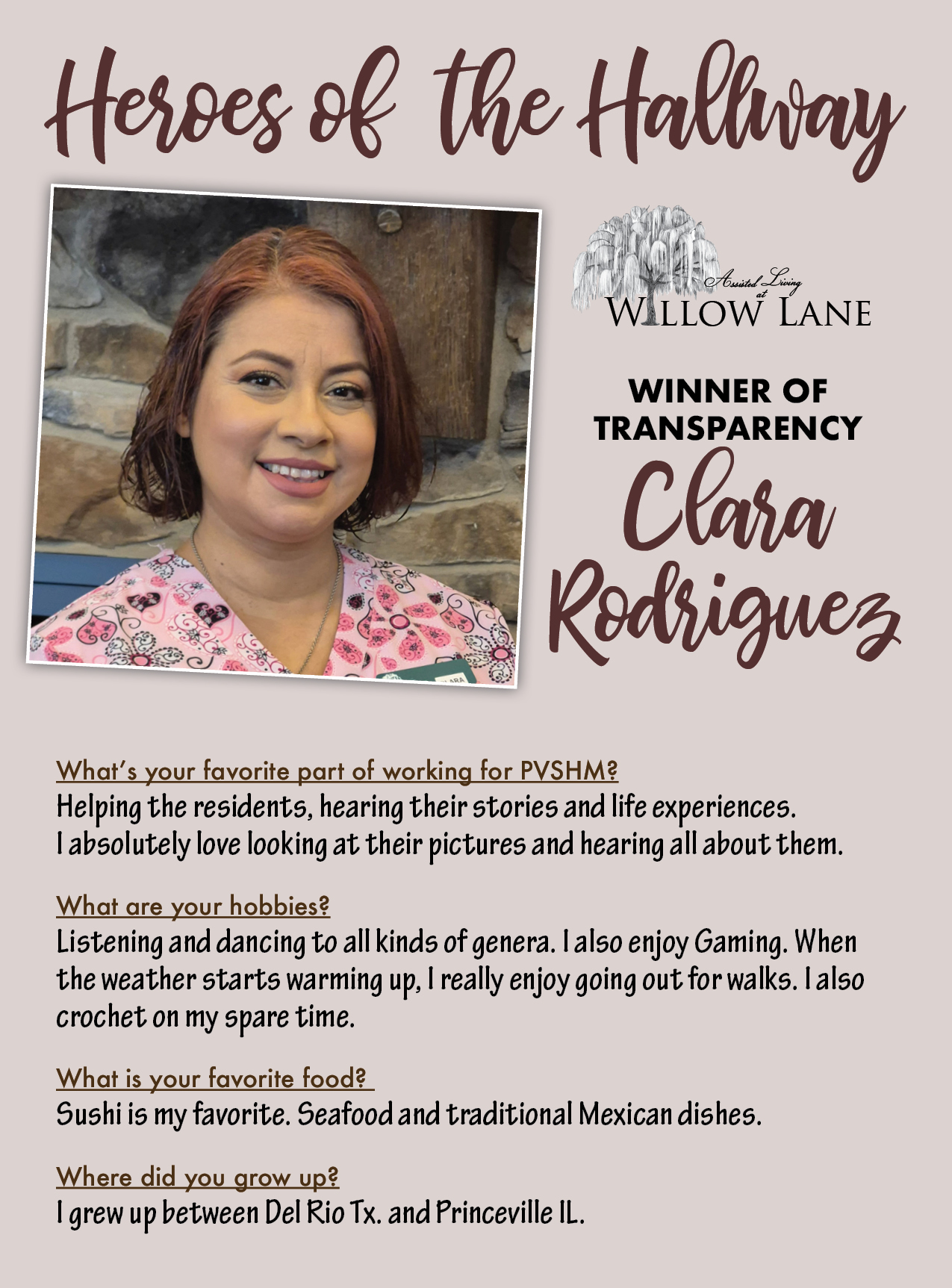At Park Vista, our mission is “taking care of our loved ones with compassion and grace.” That’s what our team members focus on every day with all of our residents. It’s the dedication and hard work of our team members that we want to honor and highlight for their efforts. That’s why we’ve created our Heroes of the Hallway program.